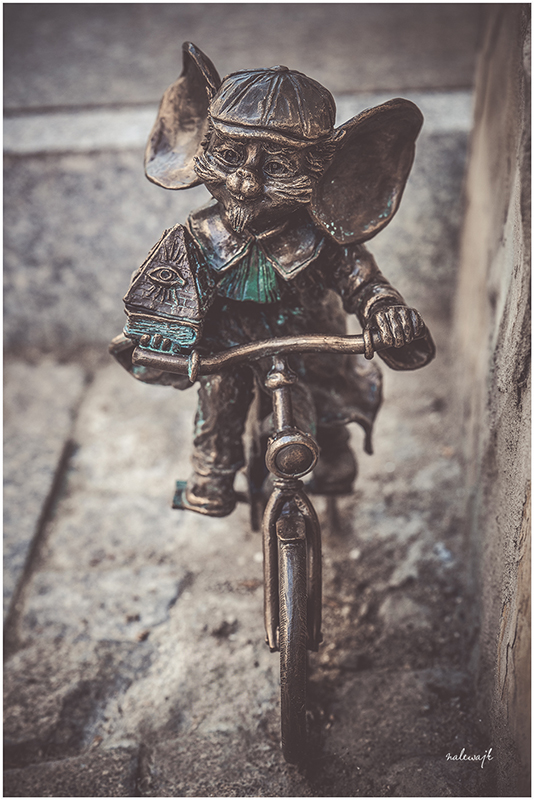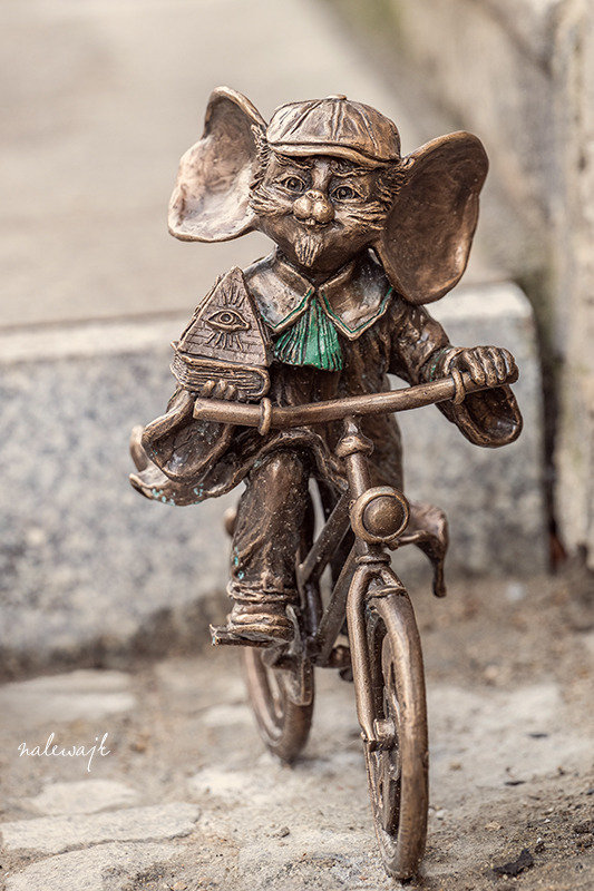 Myszka Adwokat, stojąca przy ulicy Jana Kazimierza w Bydgoszczy, od początku budziła zainteresowanie przechodniów — nie tylko ze względu na elegancki strój i rower, ale także na bogatą symbolikę towarzyszącą jej figurce. Na jej podstawie i atrybutach można dostrzec znaki, które odnoszą się do uniwersalnych wartości: prawa, sprawiedliwości, wiedzy, oświecenia i opatrzności.